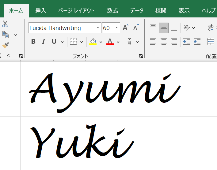 → 使用フォント例:Lucida Handwriting(サイズ60)