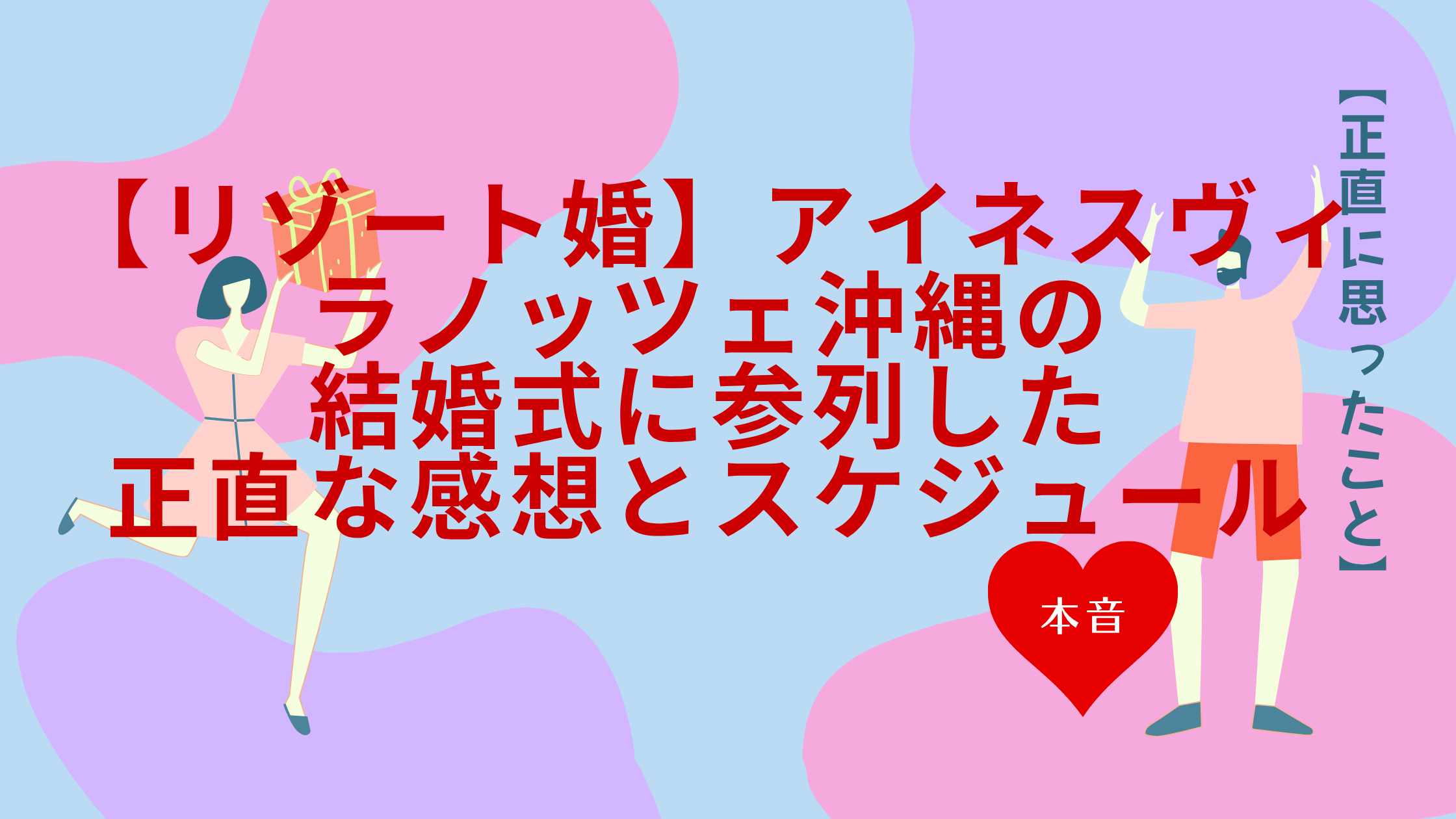 アイネスヴィラノッツェ沖縄の結婚式に呼ばれている方はもちろん、これからリゾート婚を挙げる方にとって、ゲストの気持ちを知るきっかけとして役立ててもらえたら嬉しいです。